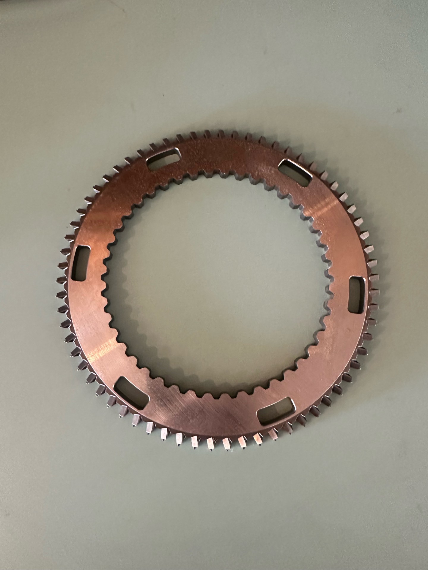 G56 1st Clutch Gear/Engagement Plate. These need to be replaced whenever wear from grinding is present, dulling the sharpness of the teeth which degrades shift quality. Get a quality replacement from Long Range Gear today! Made in Italy.